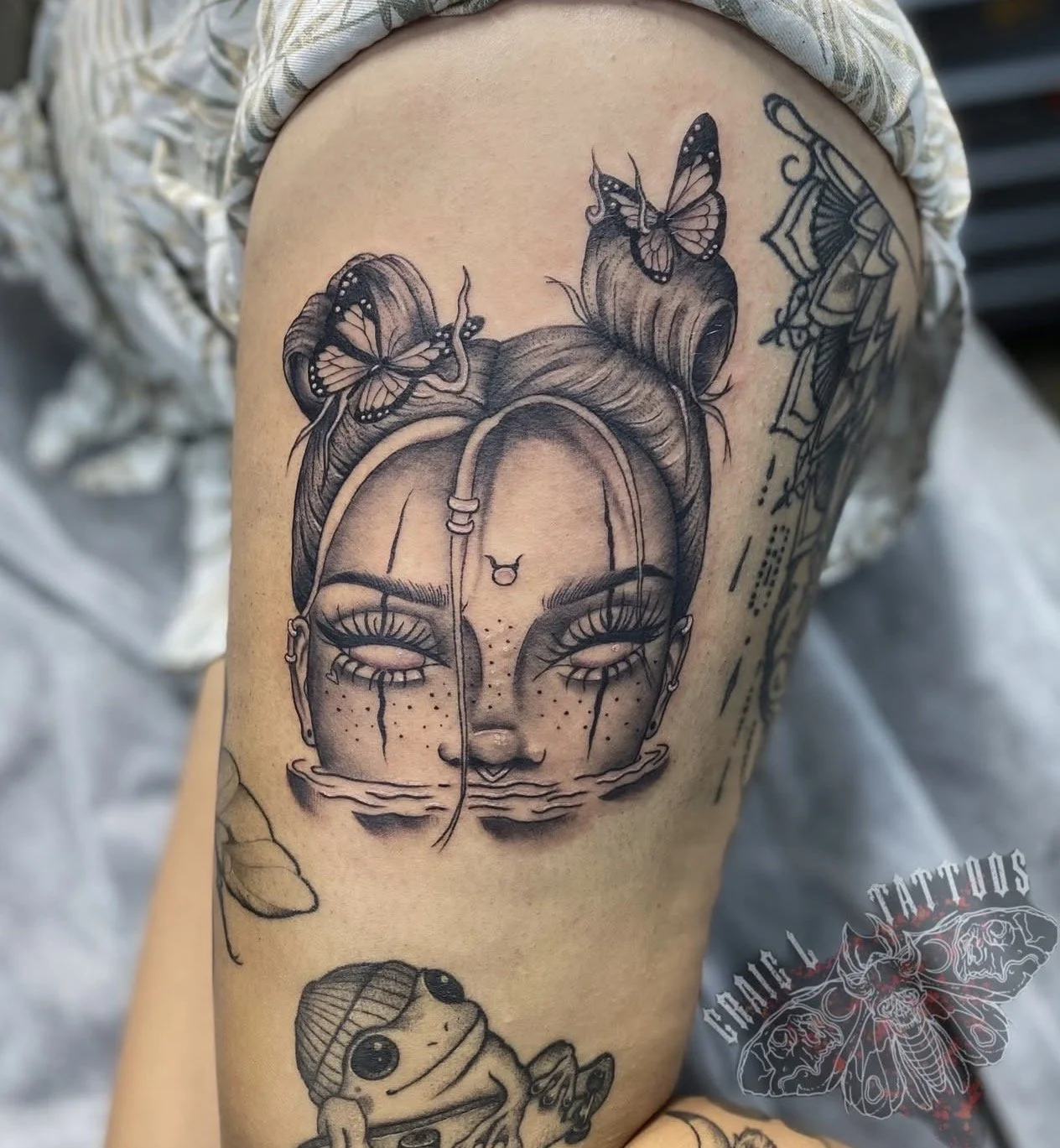 Hi, I’m Craig. I’ve been tattooing for over four years. I started out doing a bit of trad and black and grey stuff, but found my passion in blackwork fineline and stipple shading, lately leaning into a neotraditional style with bold outlines, texture, and soft grey washes. I love creating tattoos that feel raw, balanced, and alive.