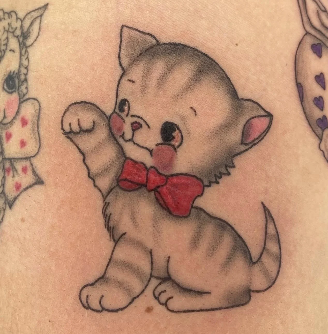 Hi I’m Kitty, a 26-year-old tattooist from San Diego, California, with five years of experience and a deep love for tattooing and visual art. My mission is to create meaningful, well-crafted tattoos inspired by vintage design, including classic cartoons like Betty Boop, Sailor Jerry flash, vintage Valentine cards, and 1920s Art Deco aesthetics. Working across American Traditional, Fine-Line, and Realism (Black and Grey primarily, but currently practicing colour), I strive to create timeless tattoos while providing a thoughtful, respectful experience for every client.